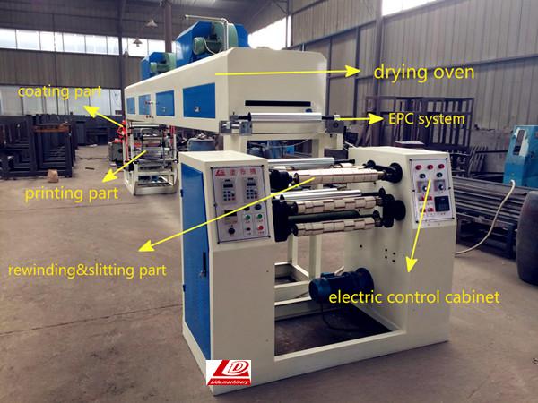 LD-500C BOPP tape coating machine includes coating part, printing part, drying part and slitting part.